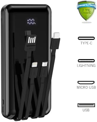 10000 mAh Dijital Göstergeli Dahili Kablolu Powerbank 10000 mAh Powerbank Lightning – Type C – USB – Micro USB Dahili Kablolu Powerbank BPB3