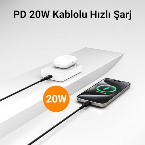 JMP510 Manyetik Standlı 10.000mAh 20W kablosuz taşınabilir şarj aleti (powerbank) ile akıllı telefon, tablet (,,, v.b) gibi cihazlarınızı rahatlıkla şarj edebilirsiniz. Juo JMP510 aynı anda 2 cihaza kadar desteklemektedir. Manyetik özelliği ile ve uygun cihazlarınızı kablosuz olarak 15W gücüne kadar şarj edebilirsiniz. MagSafe kablosuz şarj özelliğinin haricinde 1 adet 20W çıkış gücü desteğine sahip USB-C (Type-C) portu bulunmaktadır. Bu port hem powerbanki hemde akıllı cihazlarınızı şarj etmek için çift yönlü (giriş-çıkış) olarak kullanılmaktadır. JMP510 Powerbankin standlı tasarımı cihazınızı kullanırken kolaylık sağlar; böylece hem şarj edebilir hem de videolarınızı izleyebilirsiniz. Yeni nesil akıllı çipler sayesinde yüksek güvenlik ve hızlı şarj imkanı sağlamaktadır. Lityum Polimer (Li-Po) bataryası ile uzun ömürlü şarj/deşarj döngüsü sağlamaktadır. Led bildirim ışıkları taşınabilir şarj aletinin kalan pil yüzdesini dört kademe olarak göstermektedir. Model : JMP510-B Renk : Siyah Kapasite : 10.000mAh Batarya : Li-Po (Lityum Polimer) Giriş Portu: USB-C (Type-C PD) 5V-3A / 9V-2A (18W) Çıkış Portları: USB-C: 5V-3A / 9V-2.22A / 12V-1.67A 20W Max. Kablosuz Hızlı Şarj: 15W Max. Güç Düğmesi : Var Güç Göstergesi : Kalan pil sevisyesini gösteren kademeli led ışıklar Materyal : Fireproof ABS + PC + Soft Silikon Desteklenen Protokoller USB-C Giriş : PD2.0/PD3.0/QC2.0/QC3.0/AFC/FCP USB-C Çıkış : PD2.0/PD3.0/QC2.0/QC3.0/AFC/FCP,PPS 5~5.9V 3A,PPS 5~11V 2A Koruma Protokolleri : Kısa Devre Koruması Yüksek Akım Koruması Aşırı Şarj Koruması Aşırı Isınma Koruması Ürün Boyutu : 99*67*20mm 10000mAh MagSafe Powerbank Standlı PD20W Taşınabilir Kablosuz Hızlı Şarj Cihazı Siyah