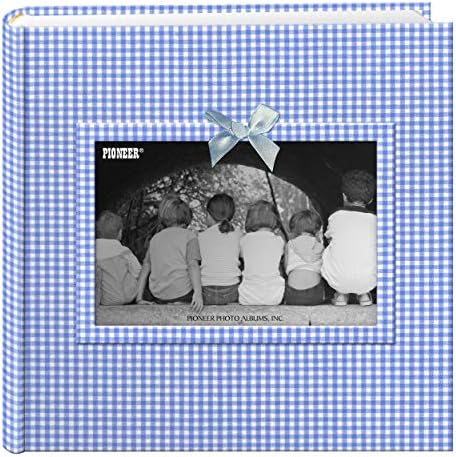 Gingham kumaş kılıf Yükseltilmiş çerçeve Bantlı. 200 fotoğraf için Fotoğraflar için güvenli: Asit, linyin ve PVC içermez. 10cm X15cm 2-UP 200 PHOTO BABY FRAME GINGHAM FABRIC MEMO ALBUM – GINGHAM BLUE – Album