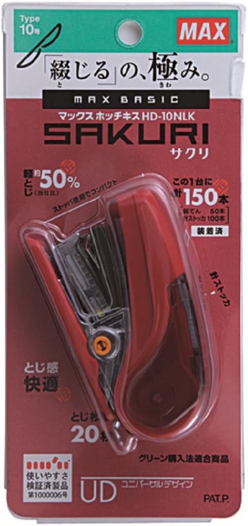 -10NLK/R Zımba, Sakuri, 20 Parça, 100 Yedek İğne Tutar, Kırmızı