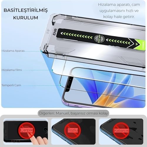 : Ürünümüz 11 ve XR Telefonu ile Birebir Uyumludur. : Bu ürünü Telefonunuzun Üzerine koyarak Tam oturan otomatik hizalama kolay kurulum aparatı ile saniyeler içerisinde zahmetsiz hızlı kurulum imkânı. Hiçbir hava kabarcığı, toz veya yapışkan kalıntısı bırakmaz. : Ürünü Telefonun üstüne Yerleştir , Çek ve Aparatın Boşluklarından bastırıp Aparatı Kaldır. Hiçbir Şekilde Toz Kalmaz ve Baloncuk Yapmaz Kutu içeriğinde telefonunuza kolayca uygulamak için ekran koruyucu yerleştirici aparat vardır Ultra ince yapısı sayesinde ekranınıza bire bir uyum Kaliteli dayanıklı cam malzeme uzun süreli kullanım sağlar Kolay yapışabilen, kendinden adsorpsiyon Kabarcık yapmayan yüksek kaliteli HD görüntü Stabil ve net bir görüntü elde edebilirsiniz 11 ve XR ile Uyumlu Darbelere Karşı Maksimum Koruma Sağlayan ve Kolay Uygulama Aparatlı Hiçbir Şekilide Telefonda Toz Bırakmayan Cam (11 / XR)