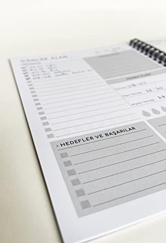 Menşe Ülke: Türkiye A5 (15 cm x 21 cm ) boyutunda tasarım 60 yaprak (120 sayfa) içerik 120 günlük tarihsiz planlayıcı Her iç sayfa 90 gr. Ivory kağıt ve 350 gr. Siyah kapak Spiralli yapısı ile kullanım kolaylığı Her sayfa geniş ve rahat yazım alanı sunar Taşıması ve kullanması pratiktir Günlük planlarınızı düzenlemek için ideal 120 Günlük Tarihsiz Spiralli Planlayıcı – A5 Boyutu, 60 Yaprak (120 Sayfa), 90 gr. Ivory Kağıt (Siyah Kapak)