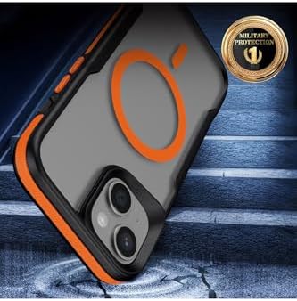 – 13 Kılıf, MagSafe Uyumlu Şeffaf Mat Buz Kasa, Airbag Köşe Darbe Koruma, Yükseltilmiş Kamera Çerçevesi, Tam Kalıp TPU+PC Tasarım | Turuncu Kenar