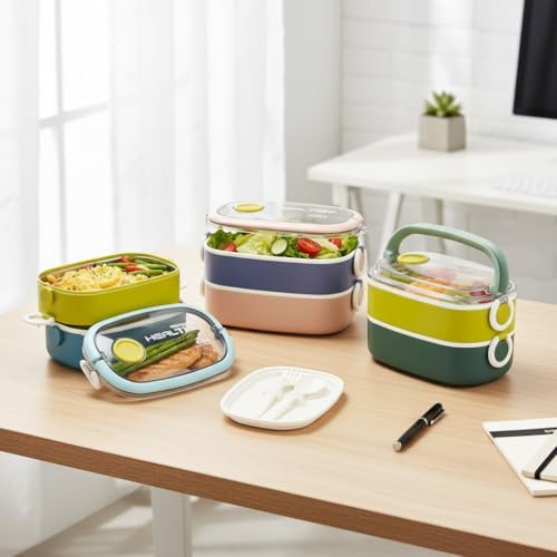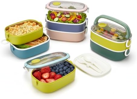 1300ML 2 Katlı 2 Bölmeli Paslanmaz Çelik Yemek Kabı – 18/10 (304 Kalite) Çelik İç Hazneli, Sızdırmaz Termal Öğle Yemeği Kutusu | Kaşık Çatal Dahil, Sağlıklı ve Taşınabilir Bento Box (YEŞİL)