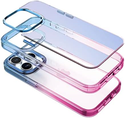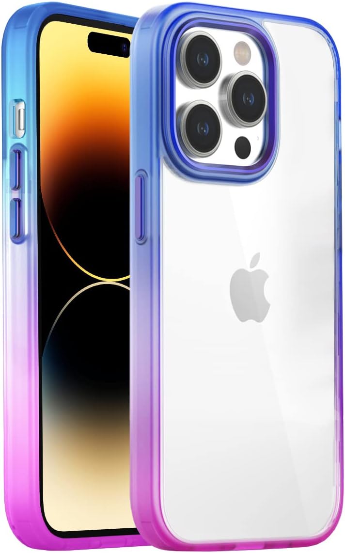 14 Pro Air Bumper Kılıf Darbe Önleyici Arkası Şeffaf Gökkuşağı Kapak, Pembe Mavi