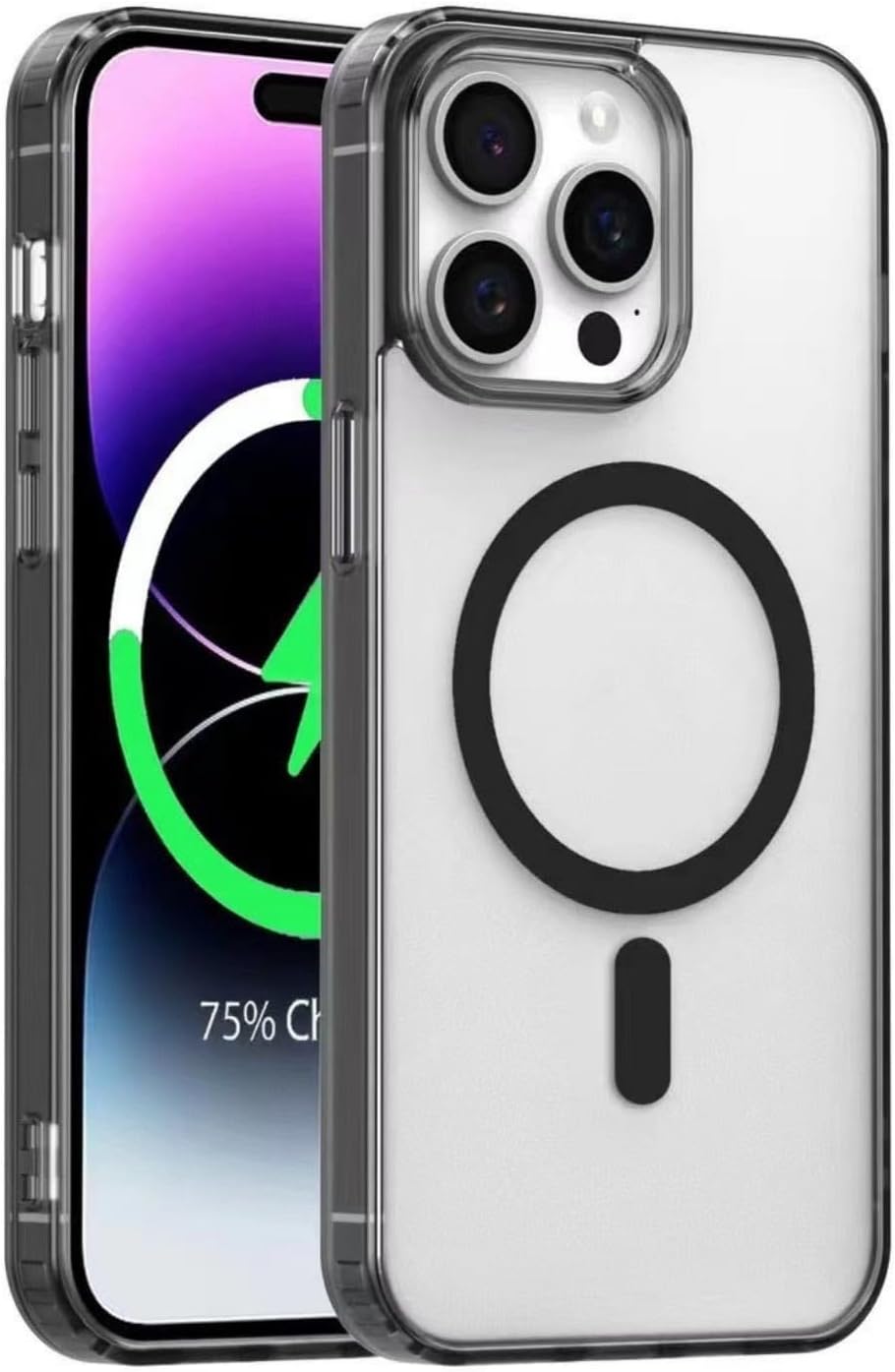 15 Pro MagSafe Uyumlu Şeffaf Sert Telefon Kılıfı Manyetik Hizalama İnce Hafif Darbe Dayanıklı Kamera Korumalı Koruma Kapak Siyah