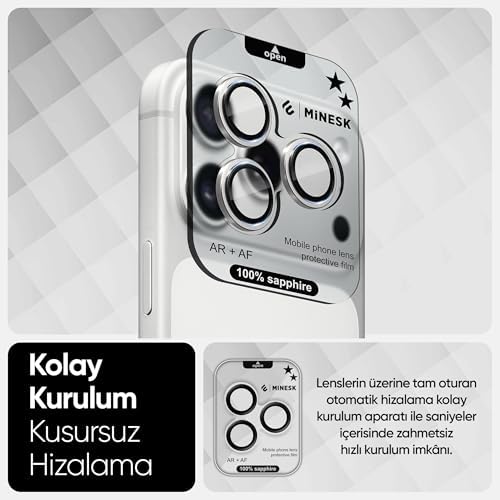 【Gerçek Safir Cam】: Cihazın kamera lensleri ile tamamen aynı kalitedeki safir materyalden üretilmiş bu lens koruyucu, cizilmelere karşı mükemmel bir koruma sağlarken, aynı zamanda lens takılmamış gibi bir görüntü netliği de sunar. 【Yüksek Kalite Yapışkan】: Diğer ucuz lens koruyucularının aksine, bu ürünün yapışkanları, lenslere mükemmel bir şekilde yapışır. Şeffaf görünümdeki bu yapışkan, lensler sökülmek istendiğinde ise, kesinlikle kalıntı gibi kirli bir yüzey bırakmaz. 【Metal Alaşım Çerçeve】: Cihaz rengine tam uyumlu metal alaşım çerçeve, cihazla bütünleşerek, zarif ve estetik bir görünüm sağlar. 【Bağımsız Test Raporları】: Lens koruyucu camları, bağımsız test kuruluşu tarafından, tarafsız olarak test edilerek, gerçek safir cam olduğu doğrulanmıştır. 【Kolay Kurulum】: Kolay kurulum aparatı sayesinde üçlü set halinde satılan bu lens koruyucuları saniyeler içinde kusursuz bir biçimde takabilirsiniz. 16 Pro-16 Pro Max ve 17 Pro-17 Pro Max ile Uyumlu Orijinal Safir Cam (%99.9 Saflıkta Gerçek Safir) Cihazın Kendi Lensleri ile Aynı Materyal Lens Koruyucu Kamera Camı (Gümüş)