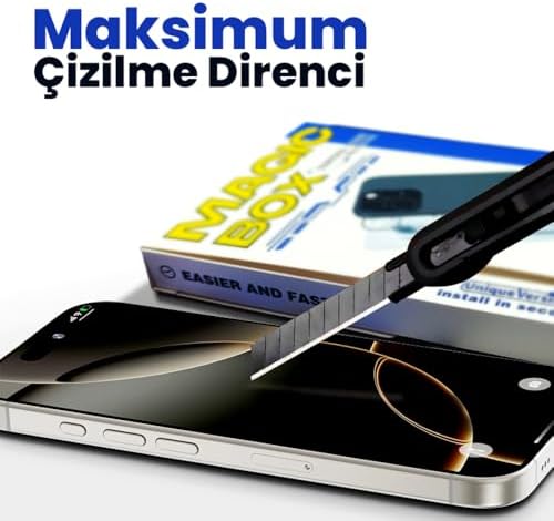 16 Pro ve 17 modelleri için özel tasarlandı Yeni Nesil Tozsuz Uygulama Sistemi – Geliştirilmiş hizalama çerçevesi daha kolay hizalama ve daha güvenli uygulama sunar. Toz toplama filmi %100 toz koruması sağlar. Kurulum korkusuna son – 30 saniyede, profesyonel yardım olmadan kusursuz kurulum. 3 Adımda Kolay Kurulum – 1) Telefonu yerleştir, 2) Toz filmini çek, 3) Camı uygula. Baloncuk yapmaz yapışkan teknolojisi ile ilk denemede mükemmel sonuç. Shin-Etsu Elektro Kaplama Teknolojisi – Shin-Etsu elektroplating kaplama ile %90'a varan parmak izi azalması. Yağ ve sıvıları anında reddeder, saniyeler içinde kolay temizlik. 9H Sertlik & 120cm Darbe Testi – Yüksek alumina ile güçlendirilmiş temperli cam. 120cm yükseklikten 64gr metal bilya testinden hasarsız geçer. Uzun temperleme ile esnek yapı, ikiye katlansanız dahi kırılmaz. %99 görüntü geçirgenliği ile orjinal ekran kalitesi. Tam Kaplama & Orijinal Hisset – Lazer kesim oval kenarlar ile ekranı uçtan uca tam koruma. Çoğu kılıfla uyumlu tasarım. Genişletilmiş kavis ile pürüzsüz dokunmatik hissiyat – orjinal ekran ile ayırt edilemeyen kullanım deneyimi 16 Pro / 17 Ekran Koruyucu Cam | MAGIC-BOX Tozsuz Hizalama Aparatı | Tam Kaplama 9H Kırılmaz & Çizilmez
