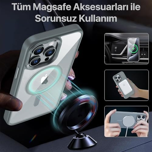 16 Pro için SUPER-CRYSTAL ile Uyumlu Kılıf Arkası Kristal Berraklığında Cam Görünüm Kenarları Darbe Emici Silikon Hybrid Kılıf (Titanyum Gri, 16 Pro)
