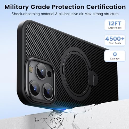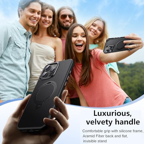 16 Pro Max için Kılıf, MagSafe ile Uyumlu, [Dahili 360° Spin Manyetik Standı] Askeri Sınıf Darbeye Dayanıklı Gen-5 Aramid Fiber Kılıf Koruyucu Kılıf, 16 Pro Max 6,9 İnç için, Siyah