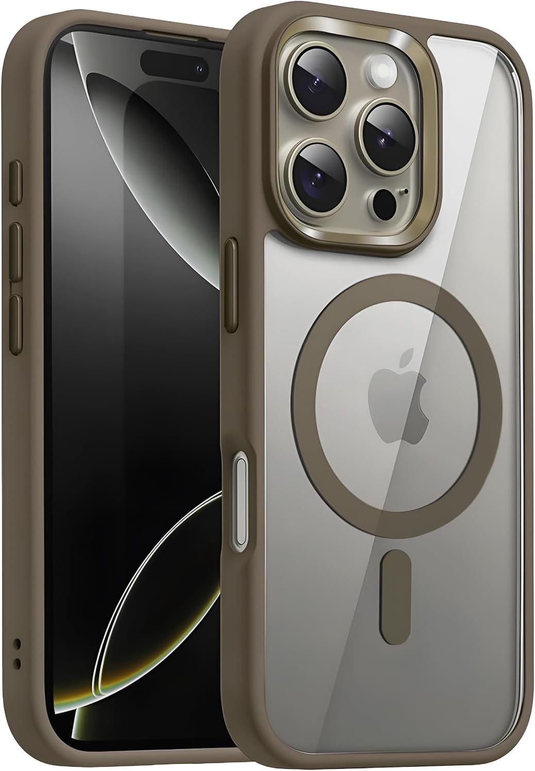 16 Pro Max için SUPER-CRYSTAL ile Uyumlu Kılıf Arkası Kristal Berraklığında Cam Görünüm Kenarları Darbe Emici Silikon Hybrid Kılıf (Kahverengi, 16 Pro Max)