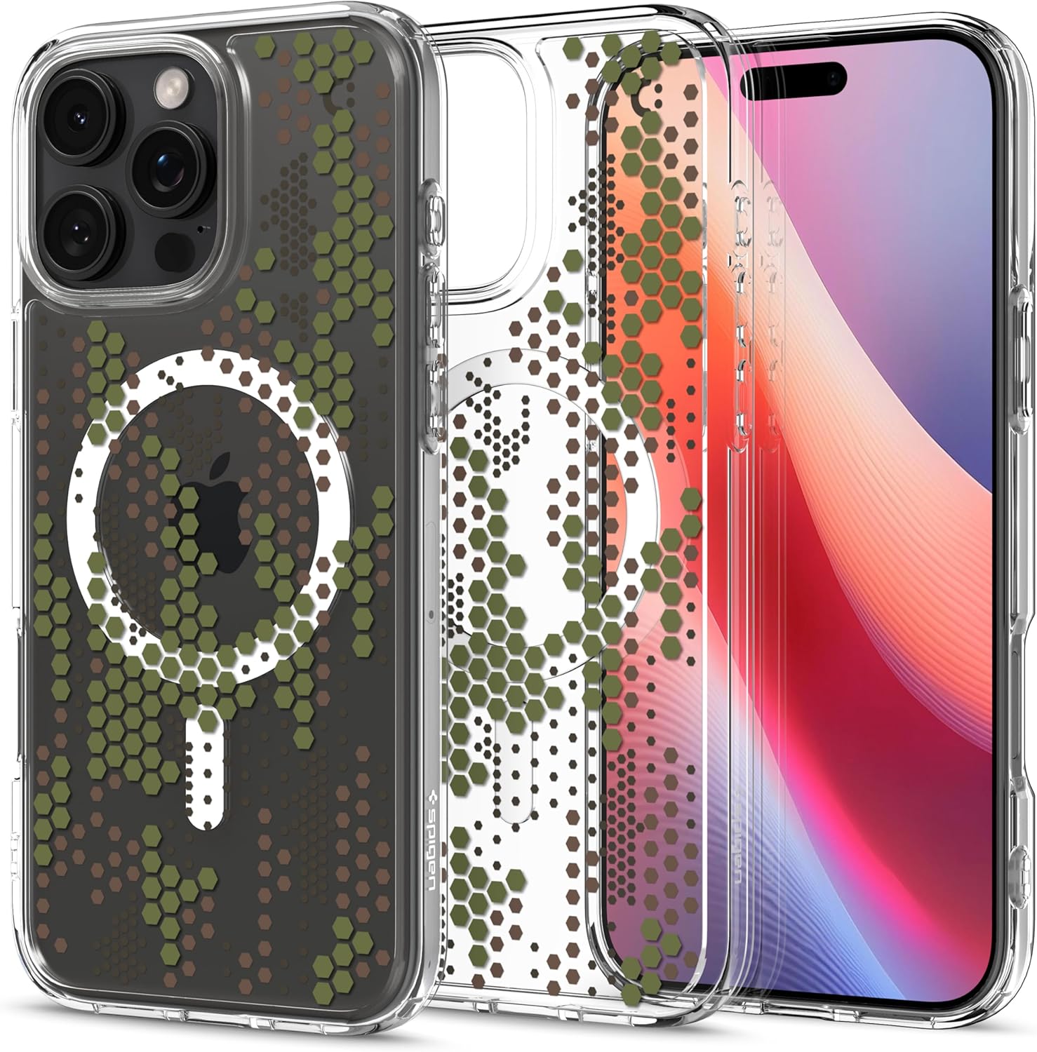 16 Pro Max ile Uyumlu ince MagSafe Kılıf Ultra Hybrid Sararma Karşıtı DuraClear™ Hava Kanalı Teknolojisi™ Askeri Sınıf Koruma MagFit Digital Camo Tasarım Kapak – ACS08007