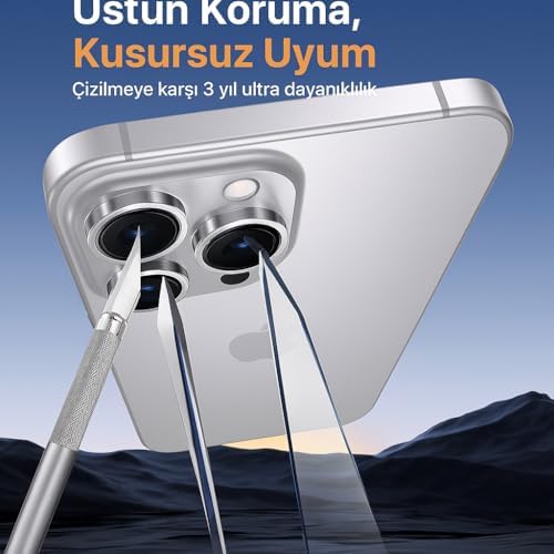 17 Pro/17 ProMax/16 Pro/16 Pro Max 15 Pro/15 Pro Max Safir Kamera Lens Koruyucu HD Kalite, Alüminyum Alaşım Çerçeve, Kolay Kurulum, Güçlü Yapışma, Çubuk Sökme Aparatlı, Gümüş