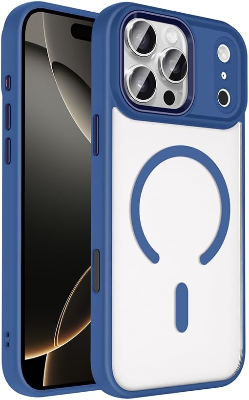 17 Pro Max İçin Kılıf Uyumlu Şarj Özellikli Krom M-safe Silikon Kapak (Lacivert)