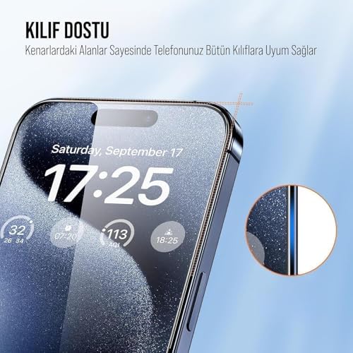 ⚡ Kolay ve Hızlı Kurulum – Otomatik Hizalama Teknolojisi ile Zahmetsiz Montaj Ekran koruyucunuzu saniyeler içinde mükemmel şekilde yerleştirebilmeniz için özel otomatik hizalama aparatı ile birlikte gelir. Hava kabarcığı, eğrilme veya yanlış hizalama riski olmadan kolayca uygulanır. Ayrıca, toz ve yapışkan kalıntı bırakmayan özel kaplaması sayesinde ekranınızı temiz ve net tutar. Parmak İzi ve Yağ Tutmayan Ultra Kaygan Yüzey – Üstün Dokunmatik Deneyim Oleofobik kaplaması sayesinde bu ekran koruyucu parmak izi, su lekesi ve yağ kalıntılarını önler. Böylece ekranınız her zaman temiz, parlak ve lekesiz kalır. Ayrıca ultra kaygan yüzeyi, dokunmatik hassasiyeti koruyarak hızlı ve akıcı bir kullanım deneyimi sunar. 9H Sertlik – Düşmelere, Çiziklere ve Darbelere Karşı Üst Düzey Koruma Gelişmiş temperli cam teknolojisi ile üretilmiş olan bu ekran koruyucu, bıçak, anahtar veya sert cisimlerden gelebilecek çiziklere karşı maksimum direnç sağlar. 9H sertlik derecesi sayesinde ekranınız darbelerden ve düşmelerden korunur, uzun süre dayanıklılığını koruyarak cihazınızın ömrünü uzatır. HD Görüntü Kalitesi – Yüksek Şeffaflık ve Netlik ile Orijinal Ekran Deneyimi Ekran koruyucu, %99 ultra şeffaf malzeme ile üretilmiştir ve ’un yüksek çözünürlüklü ekran kalitesini bozmadan kristal netliğinde bir görüntü sunar. Renkleri ve detayları tam olarak yansıtır, ekran parlaklığını düşürmeden orijinal ekran deneyimini korur. Lazer Kesim & Oval Kenarlar – Tam Ekran Koruma ve Ergonomik Tasarım Özel lazer kesim teknolojisi sayesinde ekranın her köşesini kapsayarak tam koruma sağlar. Ovalleştirilmiş kenar tasarımı, köşe ve yanlardan gelen darbelere karşı ekstra dayanıklılık sunarken, aynı zamanda kaymaz ve rahat bir kullanım hissiyatı verir. Temiz Görünüm ve Kolay Bakım – Toz Toplamayan ve Suya Dayanıklı Yapı Özel kaplaması sayesinde toz, kir ve su lekelerine karşı dayanıklıdır. Güçlü yapışkan katmanı sayesinde ekran koruyucu kolayca yerleşir, hava kabarcıkları oluşmasını engeller ve ekranınızı her zaman temiz ve pürüzsüz tutar. 17 Pro Max Uyumlu Ekran Koruyucu – Otomatik Hizalama Özellikli | Ekstra Güçlendirilmiş | Tam Koruma | Pürüzsüz Lazer Kesim Premium Kırılmaz Cam (17 Pro Max)