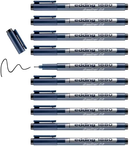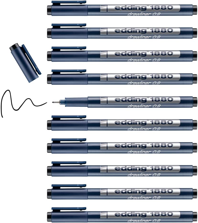 1880 teknik çizim kalemi – siyah – 10 kalem – 0,8 mm çizgi genişliği