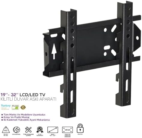 19″-32″ Sabit Kilitli Lcd Led Tv Duvar Askı Aparatı, 25 Kg Taşıma Kapasitesi, Televizyon Askısı, Duvara Montaj