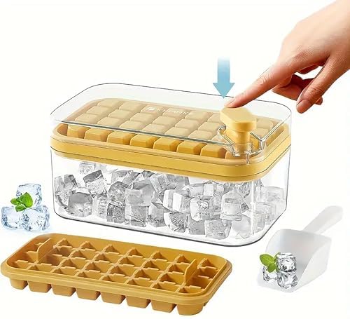 2 Katlı Buz Kalıbı Saklama Kabı Seti, Kürekli, 64 Bölmeli (Sarı)