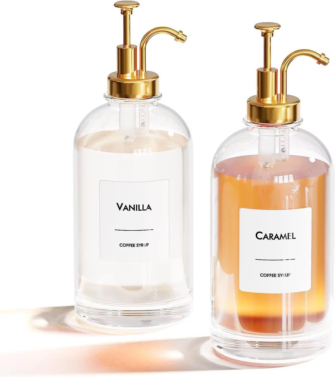 2'li 500 ml Cam Sıvı Sabunluk ve Losyonluk Seti – Yüksek Kaliteli Krom Başlık, Şık Tasarım, Çok Amaçlı Kullanım İçin: Kahve Şurubu, Sıvı Yağ, Sirke, Losyon ve Sıvı Sabun (, Yuvarlak)