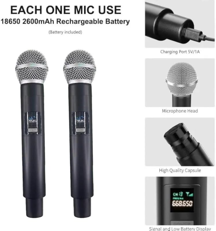 2'li Profesyonel Kablosuz Mikrofon Sistemi, Tek Alıcı El Tipi Kablosuz mikrofon, Üstün Ses Kalitesi, Güvenilir Performans, 30m Menzil, 8 Saat Pil Ömrü, LT-508, Siyah