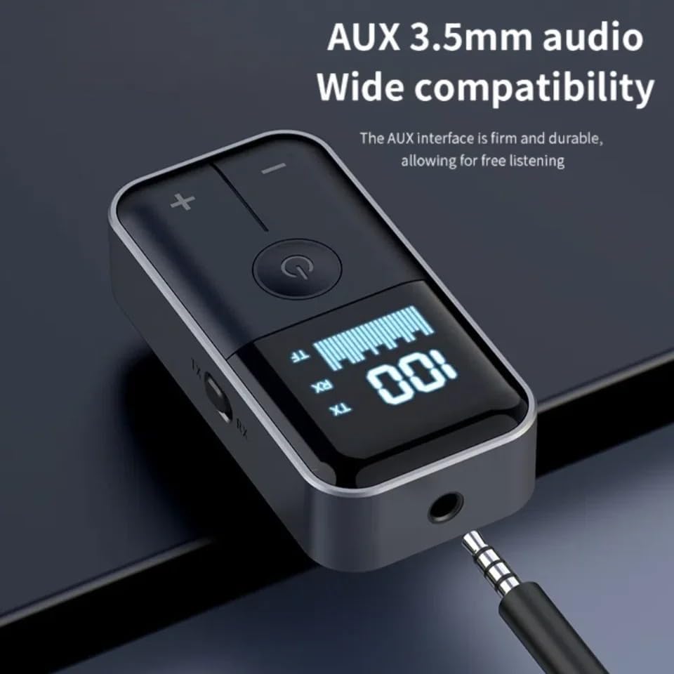 2’si 1 Arada Bluetooth 5.4 Ses Alıcı & Verici – 3.5mm AUX, TF Kart Çalar, LED Ekranlı Kablosuz Adaptör, Dahili Pil, Araba, TV, PC & Hoparlör için Müzik Aktarıcı | M20