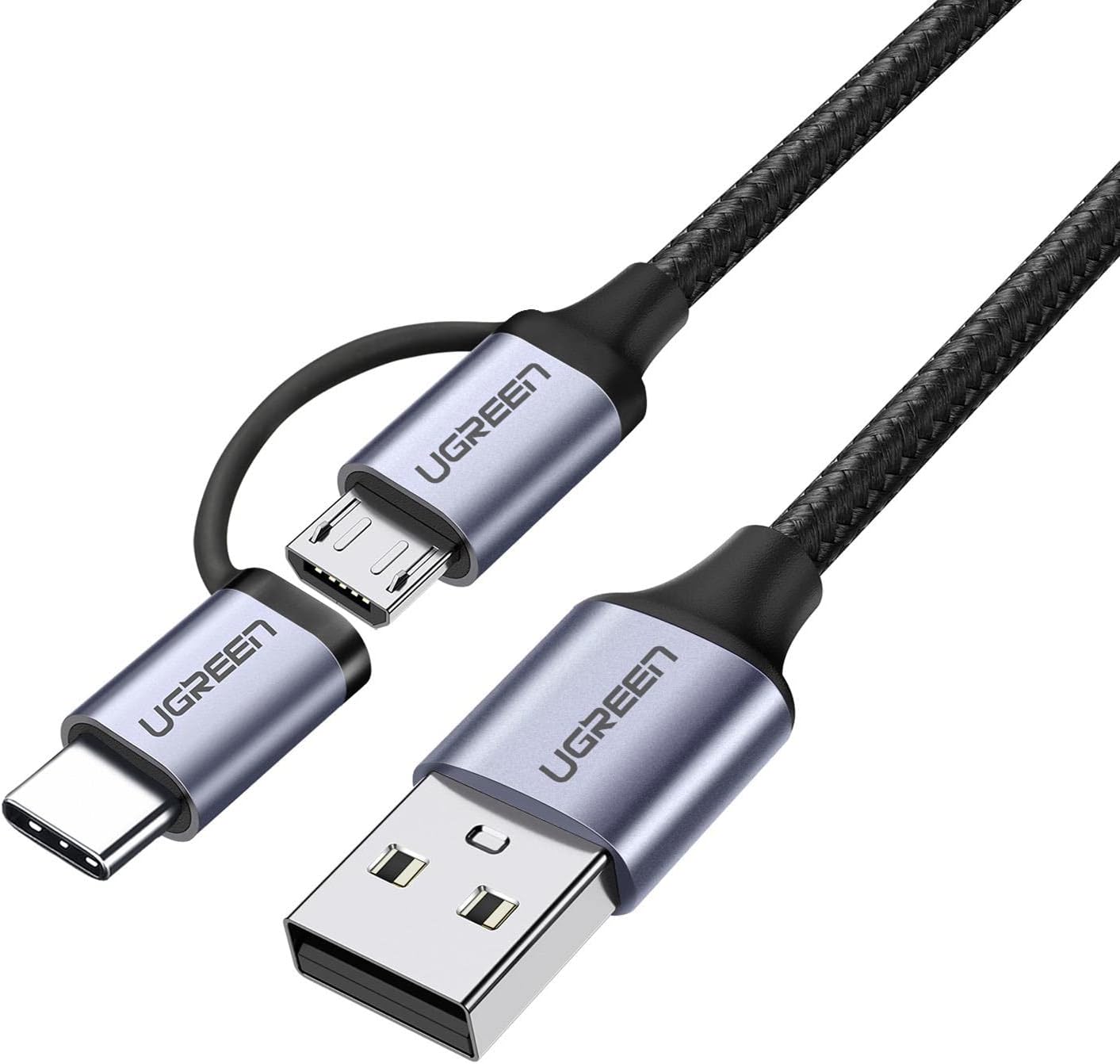 2'si 1 Arada Örgülü Type-C Micro USB Şarj ve Data Kablosu 1 Metre
