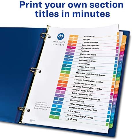 Yazdırılabilir içindekiler sayfası ile sekme bölücüleri hızlı bir şekilde düzenleyin sitesinde sağlanan ücretsiz şablonlarla bağlayıcı bölücülerinizin içindekiler sayfasına kolayca özel başlıklar, grafikler ve bir logo ekleyin 3 set A-Z bölücü, her iki tarafta dayanıklı delik ve tırnak takviyeleri bulunan kağıttır Esnek tasarım dikey veya yatay yönde çalışır ve eğitim kılavuzları ve proje bağlayıcıları için mükemmeldir Çok renkli alfabe bölücü sekmeleri önceden basılmıştır ve etiket veya ek parça gerektirmez 3 Halka Bağlayıcı için A-Z Tab Bölücüler, Özelleştirilebilir İçindekiler, Çok Renkli Sekmeler, 3 Takım (44225)