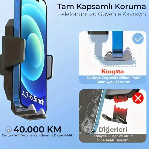 Malzeme: ABS+PVC+PU Uyumlu Boyut: 60x105mm Üstün Tasarım ve Kullanım Kolaylığı Araba telefon tutucu, ABS+PVC+PU malzemeden üretilmiş olup, dayanıklı ve kompakt bir yapıya sahiptir. Vakumlu telefon tutucu sistemi sayesinde güçlü tutunma sağlarken, silikon yastıklı yapısı telefonunuzu çizilmelere karşı korur. 360 Derece Dönebilen Mekanizma Tek tuşla açılabilen araç içi telefon tutucu sistemimiz, 360 derece dönebilen başlığı sayesinde telefonunuzu istediğiniz açıda konumlandırmanıza olanak tanır. Bu özellik, navigasyon kullanımında maksimum görüş açısı sağlar. Geniş Uyumluluk 60-105mm arası genişlikteki tüm telefonlarla uyumlu olan telefon tutucu, 4.7-6.5 inç ekran boyutuna kadar olan tüm akıllı telefonları destekler. Büyük ekranlı telefonlar için uygun mudur? Evet, 6.5 inç'e kadar olan tüm akıllı telefonlar için uygundur. Vakum sistemi ne kadar güvenli? Özel tasarlanmış vakumlu telefon tutucu sistemi, pürüzsüz yüzeylerde maksimum tutunma sağlar. 360° Dönebilen Vakumlu Torpido ve Cam için Araç Içi Telefon Tutucu