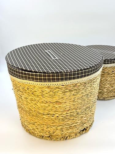 3'lü Kapaklı Hasır Sele Seti – Çamaşır ve Oyuncak Sepeti, Kirli Çamaşır Sepeti, Doğal Hasır Saklama Kutusu, El Örgüsü Dekoratif Kutu, Kıyafet, Havlu ve Ev Eşyaları (2 Li Set)