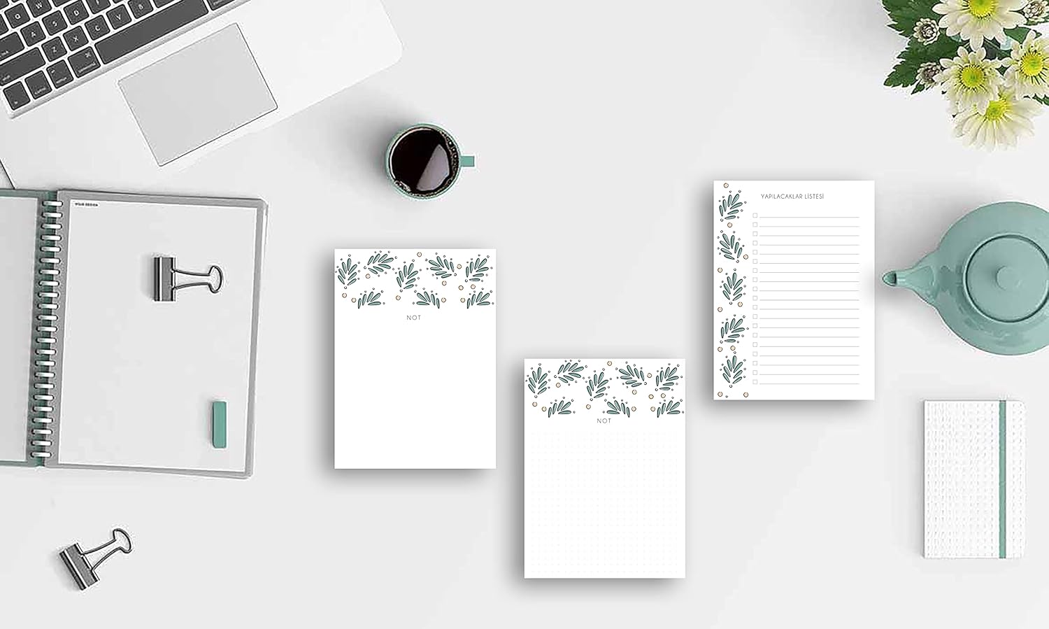 3'lü Masaüstü Çiçek Desenli Not Kağıt Seti