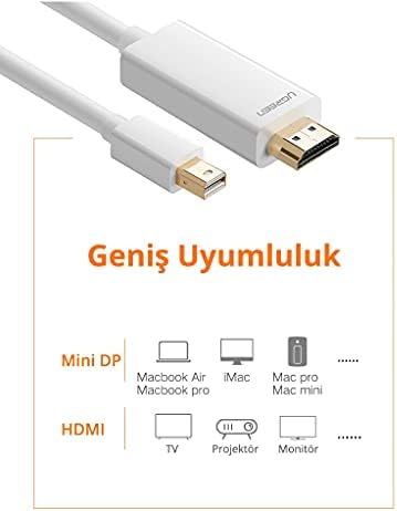 4K 60Hz ve Full HD Görüntü Desteği Mini Displayport'tan HDMI' porta aktarım Kaliteli ve Dayanıklı Malzeme 4K Mini Displayport HDMI Dönüştürücü Kablo, 3 Metre, Siyah
