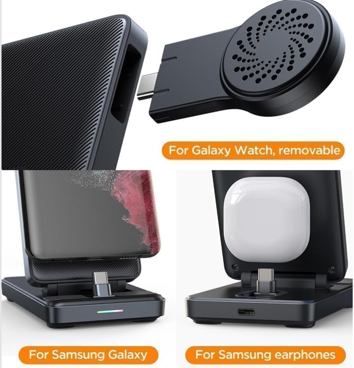 4'ü 1 Arada Tip C Çok Fonksiyonlu Kablosuz Şarj Cihazı ve Telefon Tutucu