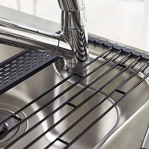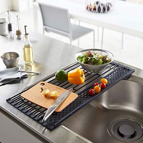 Yer tasarrufu sağlayan bulaşık rafı Rulo haline getirilebilir ve kolayca saklanabilir Özellikle az yer olan lavabolar için uygundur Japonya'dan tasarım 5058 Tower katlanabilir bulaşıklık, siyah, çelik/silikon, minimalist, 42 x 26 x 0,8 cm