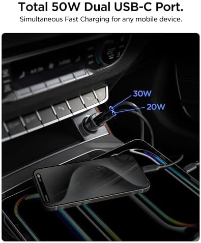 50W USB-C 2 Port Araç içi Hızlı Şarj Aleti PPS Desteği Akım Korumalı Güç Adaptörü Çakmaklık & & iPad & Type-C PD 3.0 30W + 20W EV502 – ACP08523