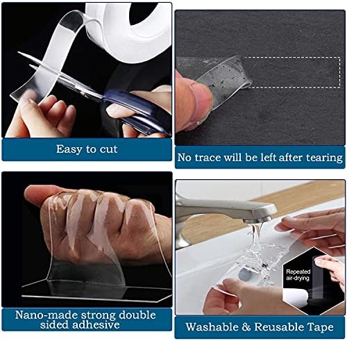 5M çift taraflı bant ekstra güçlü yıkanabilir ince nano bant, halı, ev, mutfak, araba veya ofis için şeffaf ve çıkarılabilir çift taraflı bant