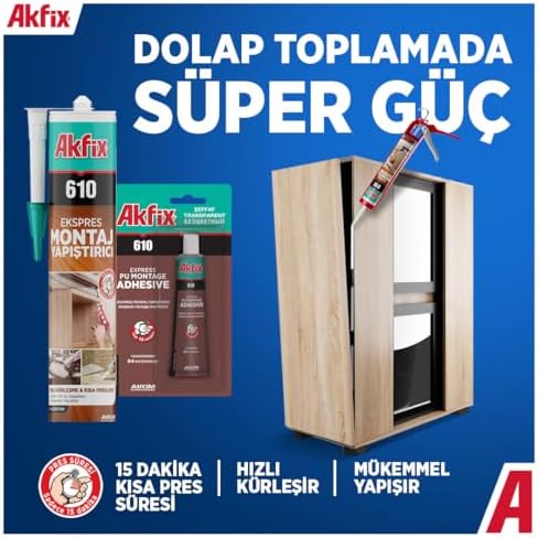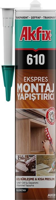 610 PU Montaj Yapıştırıcı, Şeffaf, Poliüretan, Hızlı Kuruma, Çok Amaçlı, Güçlü Yapışma, 15 Dakika Pres Süresi