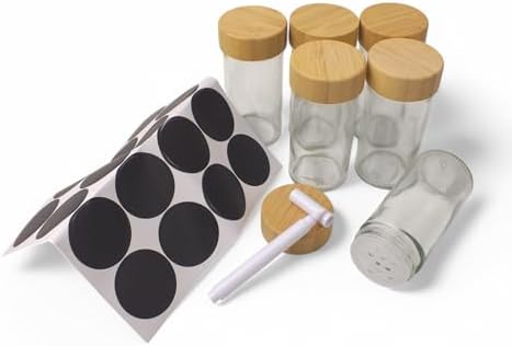 6'lı Etiketli ve Beyaz Kalemli Baharat Cam Kavanozlar, Baharatlarınızı Ayırabileceğiniz Etiket, Kalem ve 6 Adet Cam Baharatlık (Yuvarlak) 6 Adet Baharatlık, 6'lı Set