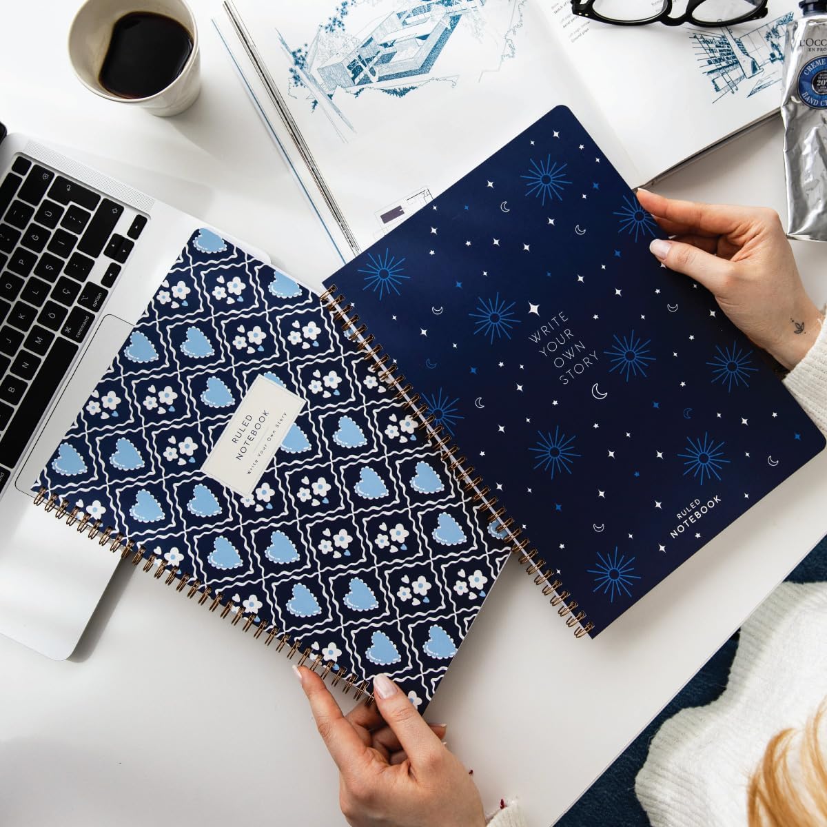 A4 Spiralli Karton Kapak 2’li Set Çizgili Okul Defteri 80 yaprak, Ders Programlı Lacivert Kalp
