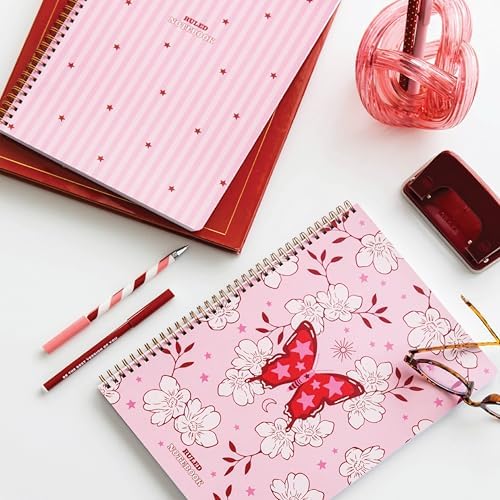 A4 Spiralli Karton Kapak 2’li Set Çizgili Okul Defteri 80 yaprak, Ders Programlı Pembe Kelebek