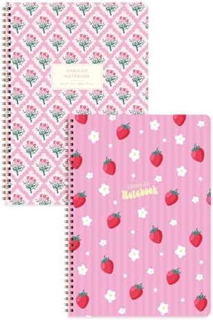 A4 Spiralli Karton Kapak 2’li Set Düz Çizgisiz Okul Defteri 80 yaprak, Ders Programlı Çilek