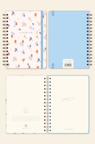 Boş sayfalar ile hayal gücünüzü kullanmanızı sağlar Zarif ve minimalist tasarımıyla not almak için uygundur Dayanıklı ciltleme özelliği ile uzun süreli kullanım olanağı sunar A5 Spiralli Sert Kapak Lastikli Çizgili Tarihsiz Not Defteri Beyaz Damlalar