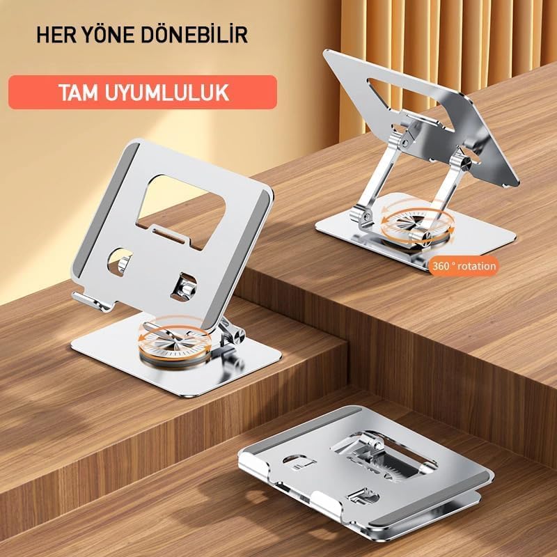 ACL Tablet Standı 360 Derece Dönebilen Tablet Stand Katlanabilir Metal Tablet Tutucu Standı Tablet ve Telefon Tutucu Stant Tablet Tutucu Metal (T125 – Gri)