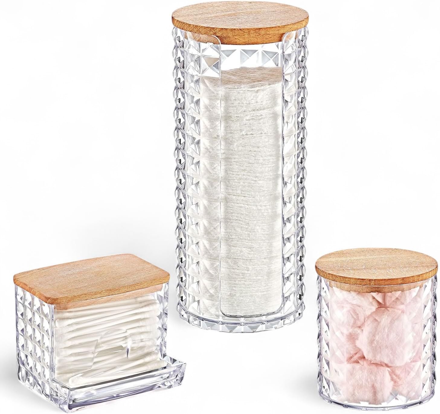 Ahşap Kapaklı 3'lü Organizer Set, Model Modern Pamukluk Düzenleyici Şık 3'lü Pamukluk Set – Şık ve Fonksiyonel Ahşap Kapaklı 3'lü Organizer Set