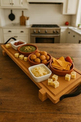 Sunum tahtası AA kalite kayın ağacından üretilmiştir Dekoratif ve fonksiyonel özellikler taşıyan geniş ahşap ev aksesuarları yelpazesi sunar Malzeme: AA kalite kayın ağacı ve %100 deri Ölçüler: 70 cm uzunluk x 19 cm genişlik x 3,6 cm yükseklik (ayaklar dahil) Ağırlık: iki kg Ahşap Servis ve Sunum Tahtası, Masif Kuruyemiş ve Meyve Sunum Tahtası, Kahvaltı Sunum Tepsisi – 70 cm