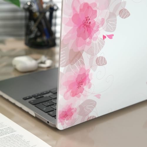Air M1 Kılıf 13 inç Uyumlu Darbe Çizilme Önleyici Sert Kapak Çiçek Desenli Lazer UV Baskı TouchID M1 Air A2337 A2179 A1932 Pembe