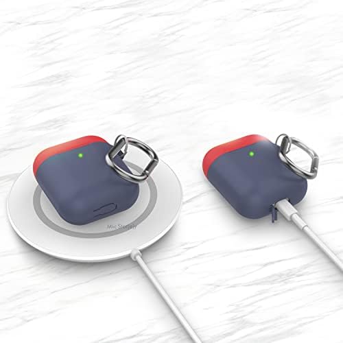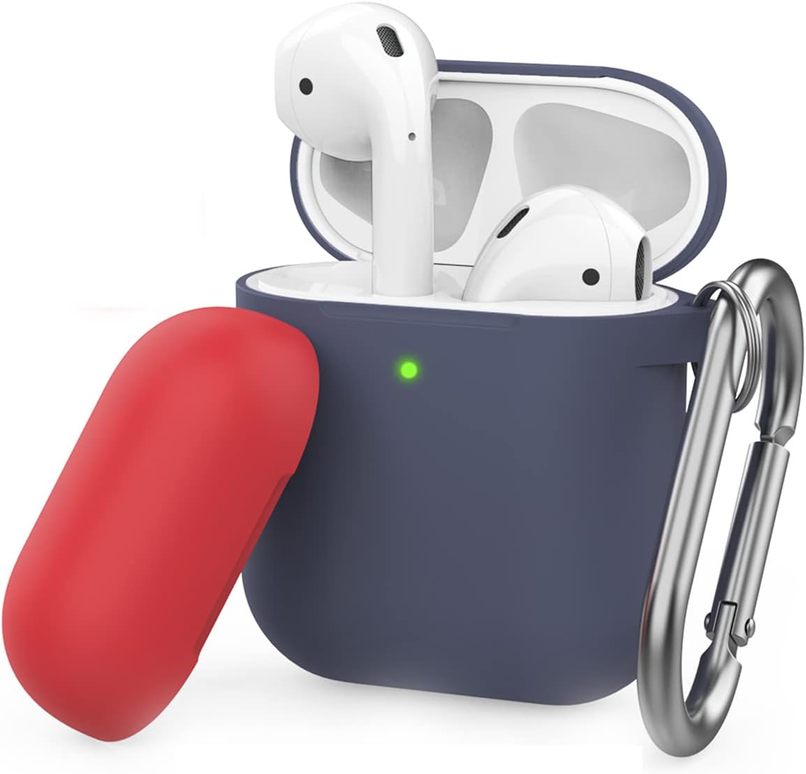 AirPods 1. ve 2. Nesil Uyumlu Silikon Kılıf – Darbeye Dayanıklı Koruyucu Kılıf, Metal Anahtarlık Halkalı (Karabinalı), Kablosuz Şarja Uyumlu, Toza Karşı Koruyucu Lacivert Mavi