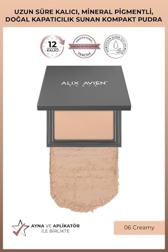 ALIX AVIEN Kompakt Pudra – 12 Saate Kadar Kalıcılık – Soğuk-nötr Cilt Alt Tonu – Compact Powder 06 Creamy