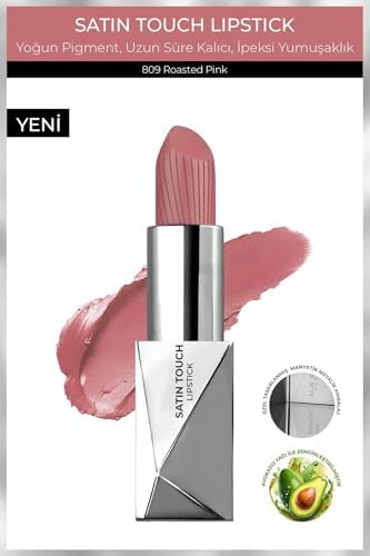 Canlı renk tonlarıyla dudaklarınıza doğal bir görünüm kazandırır Alix Avien Uzun Süre Kalıcı Nemlendirici Pürüzsüz Etkili Yarı Mat Ruj Satin Touch Lipstick 809 Roasted Pink