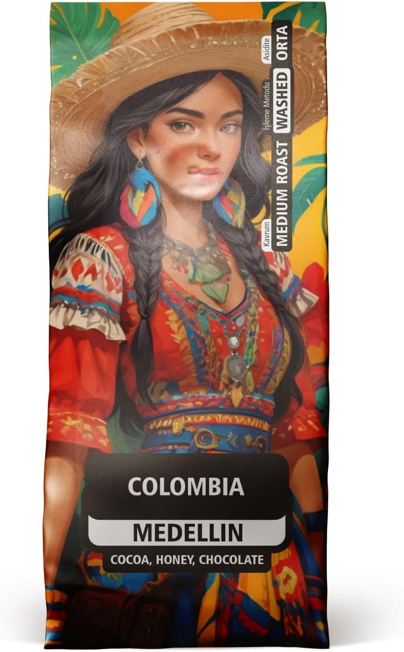 Benzersiz Lezzetler: Kolombiya'nın Medellin bölgesinden gelen bu kahve, kakao, bal ve çikolata lezzetlerinin mükemmel bir karışımını sunuyor. Otantik Deneyim: Renkli ve canlı ambalaj, yerel kültürü ve gelenekleri yansıtıyor, her yudum sizi Kolombiya'nın sıcak iklimine götürüyor. Yüksek Kalite: Özenle seçilmiş ve işlenmiş kaliteli kahve çekirdekleri, eşsiz bir aroma ve lezzet sunuyor. Gövde: Orta İşleme Metodu: Yıkanmış Amasyalı Kahveci Bekir Colombia Medellin Supremo Kahve Çekirdek 250g