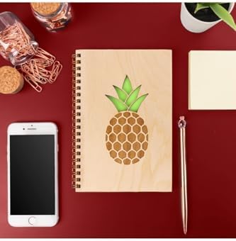 Ahşap kapaklı not defteri 12×18 cm boyutlarında Ahşap kapak üzerine tasarım lazer baskı teknolojisi ile uygulanmaktardır ve asla çıkmaz Tasarım üzerinde lazer kesim bölgeleri ve altından görünen renk ile 3 boyutlu görünmektedir Ananas Tasarımlı Ahşap Kapaklı Defter 18 Cm X 12 Cm 48 Yaprak Not Defteri